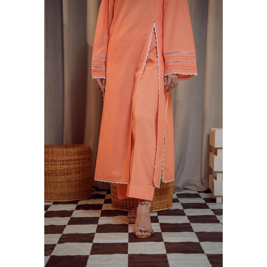 Indulge in the soft elegance of our peach-colored co-ords set and embrace the soft allur of summer in this cool hue, evoking a sense of freshness and femininity.