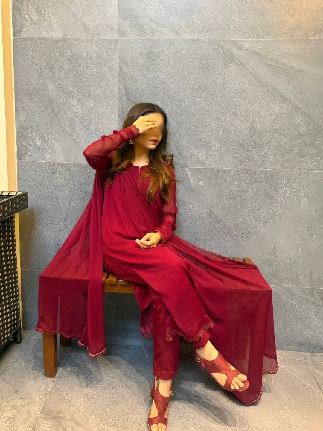 There is a reason Red is the color of celebration. It is the color of the heart, the fire of the festival, and the glow of the sun. Luxury festive wear or evening collections❤️A 3 piece Chiffon elegant dress with lacework and finest stitching.