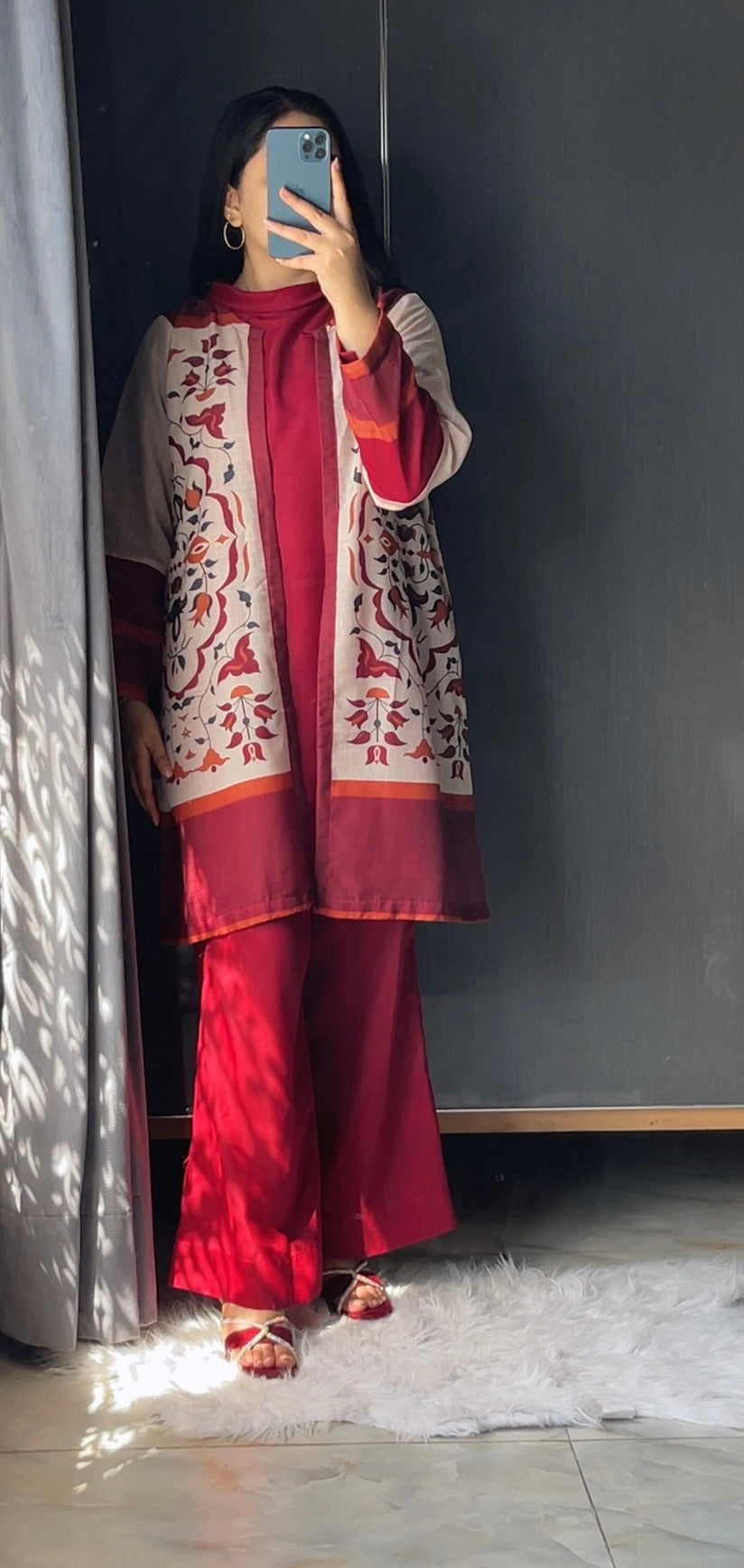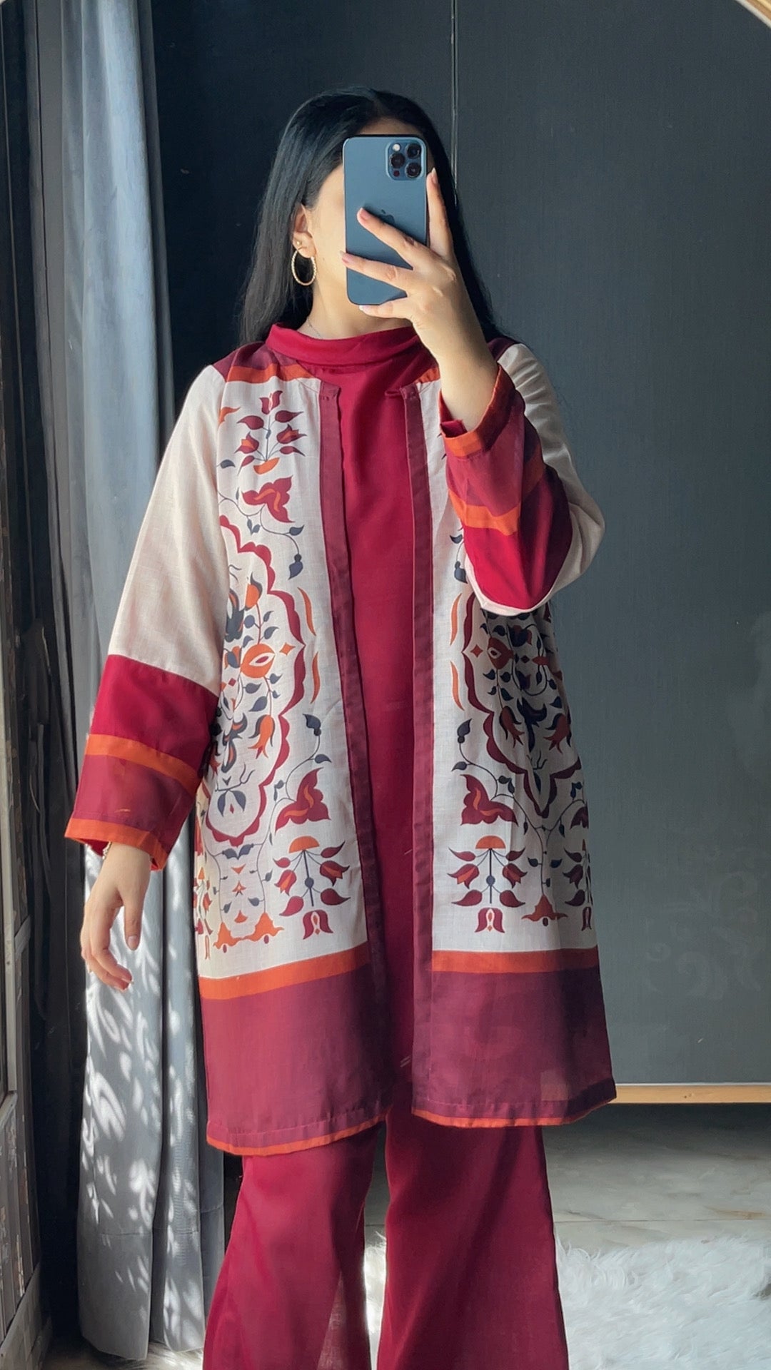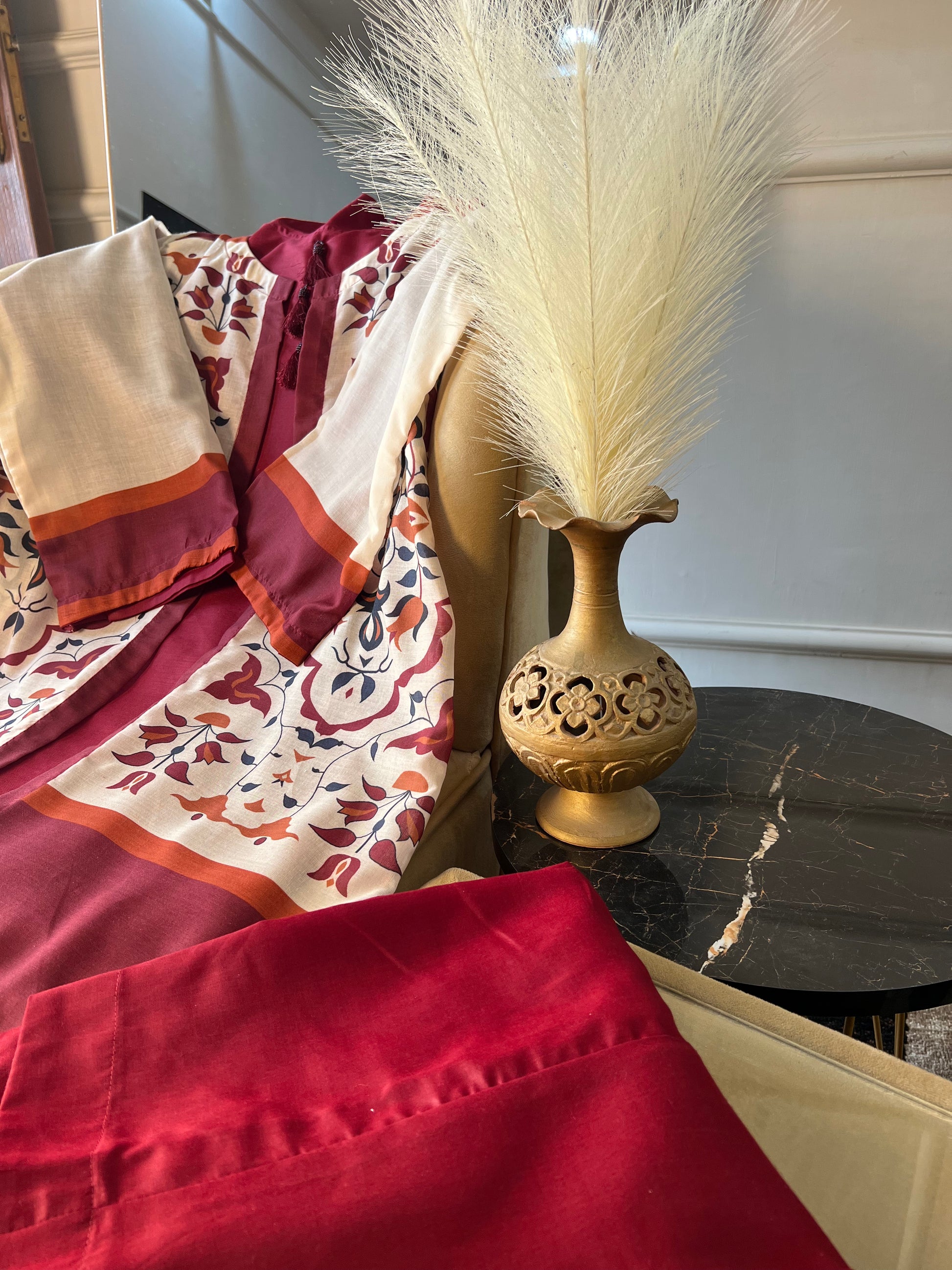 Embrace the perfect blend of style and elegance with our Maroon Rust Lawn Cotton 3-Piece Set. Designed for the warmer months, this set exudes an inviting, earthy charm that complements the beauty of summer . Its timeless appeal makes it a versatile addition to your wardrobe.
