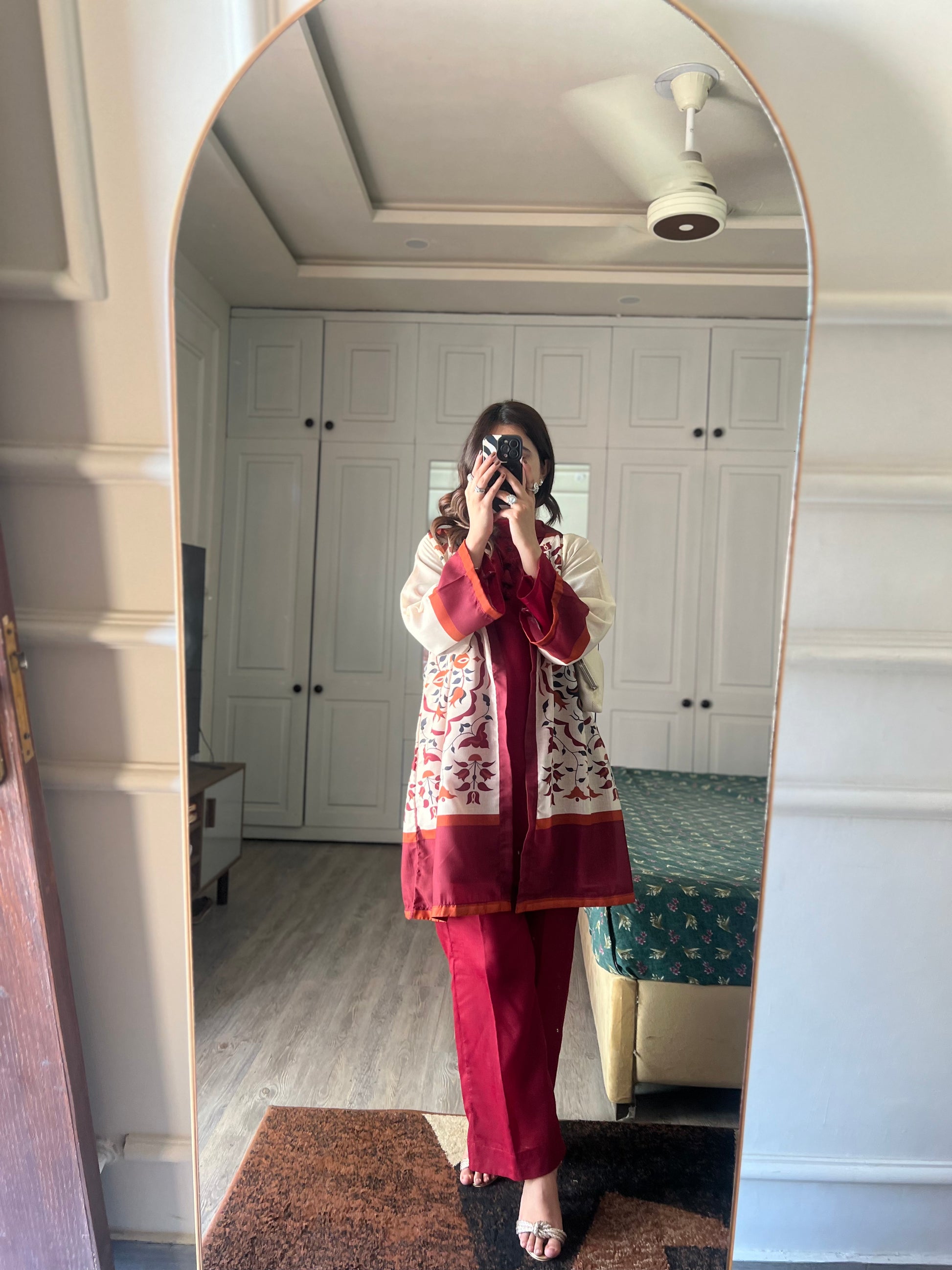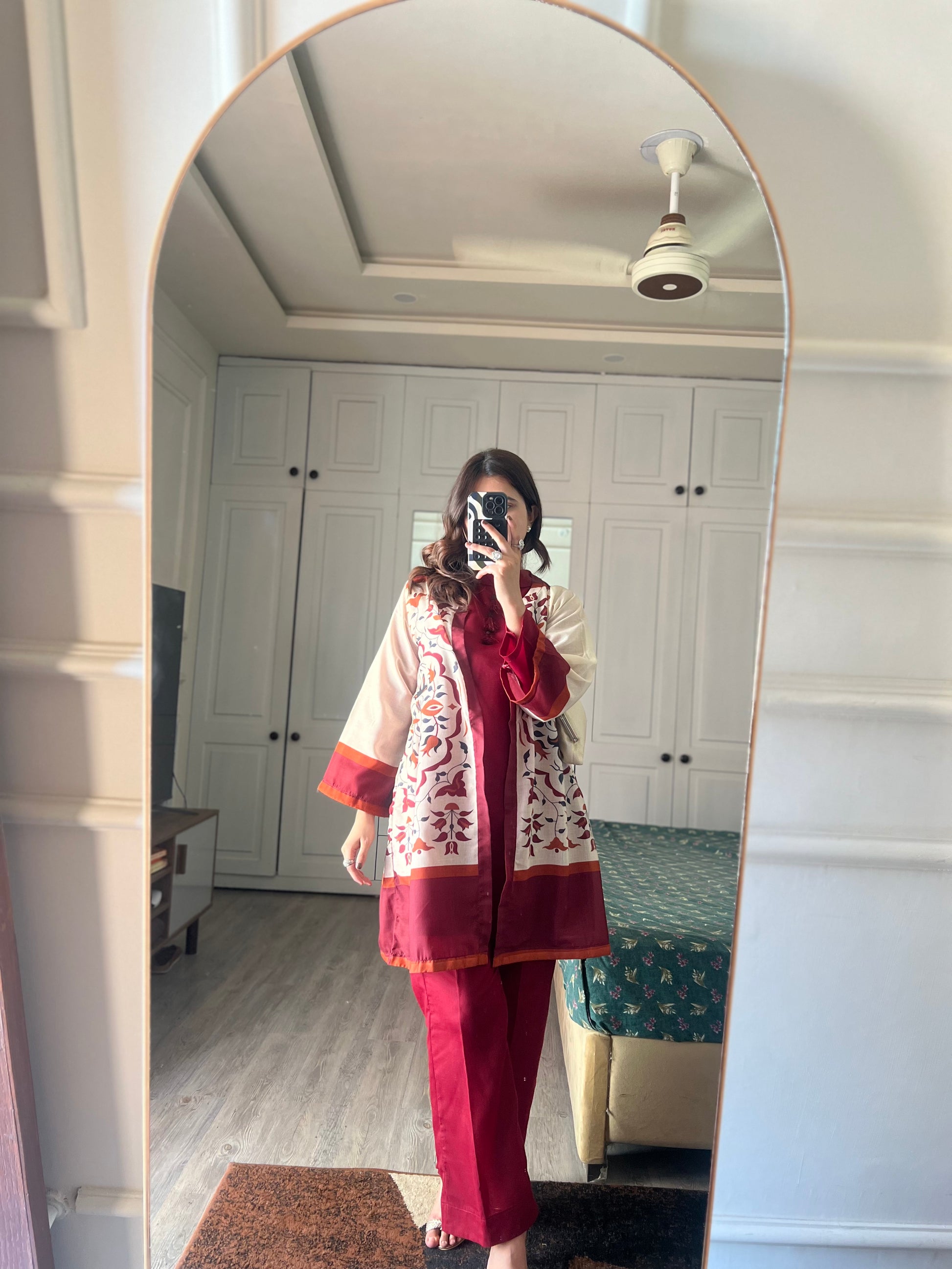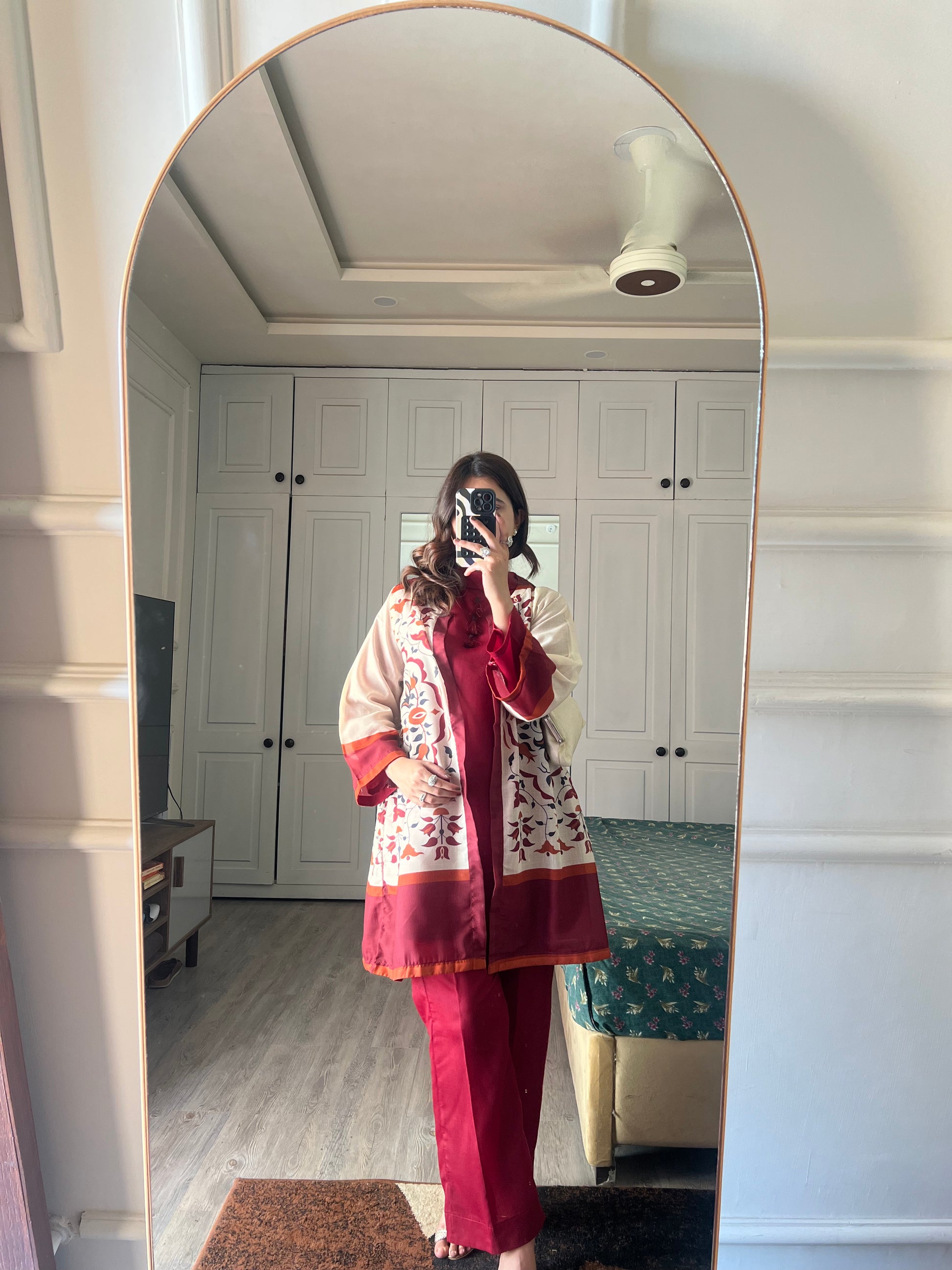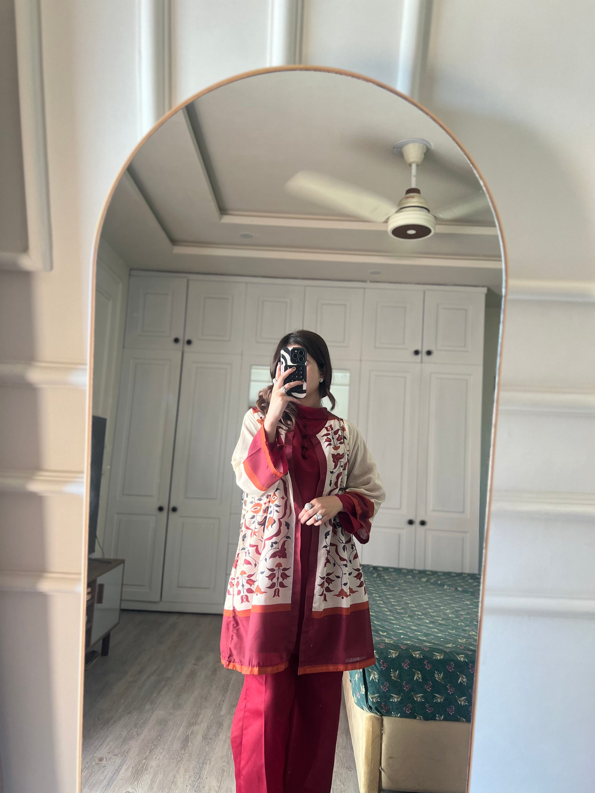 Embrace the perfect blend of style and elegance with our Maroon Rust Lawn Cotton 3-Piece Set. Designed for the warmer months, this set exudes an inviting, earthy charm that complements the beauty of summer . Its timeless appeal makes it a versatile addition to your wardrobe.